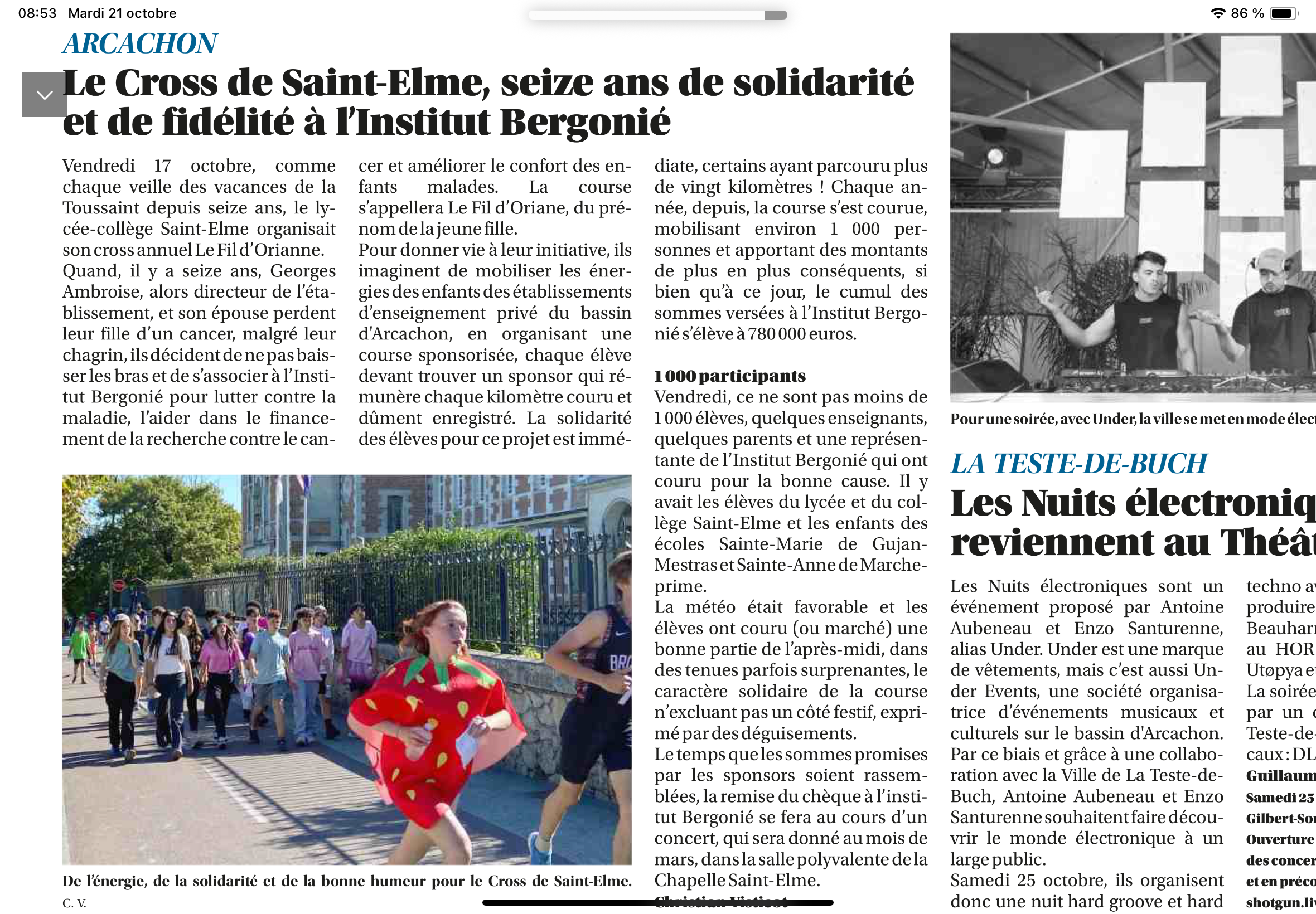 - ✏️ Arcachon : le Cross de Saint-Elme, seize ans de solidarité et de fidélité à l’Institut Bergonié – SUD OUEST